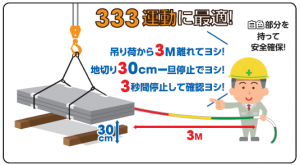 「3・3・3運動」とは「3」をキーワードにしている玉掛け作業時の安全活動の事なんだ。
