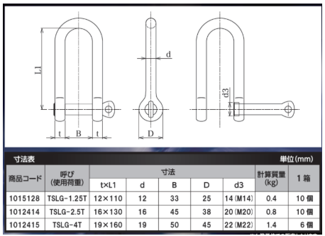 TSLGは、2015年から大洋製器工業が販売している「脱落防止タイプの強力長シャックル」だよ。