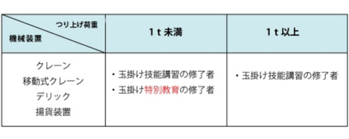 資格には「玉掛け技能講習」と「玉掛け業務に係る特別教育」があって、
