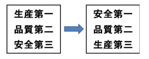 「安全第一、品質第二、生産第三」に替えたんだって!