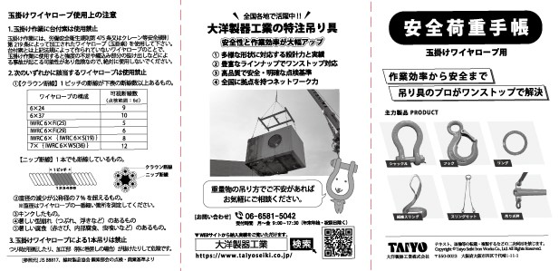 「ワイヤロープ安全荷重手帳」も用意しているよ!