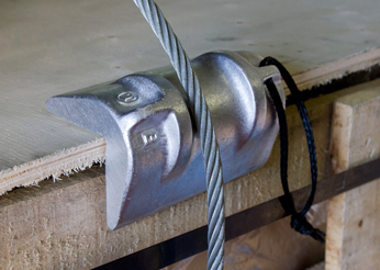 ワイヤロープが傷むのを防ぐと同時に、荷物が潰れないように守っている