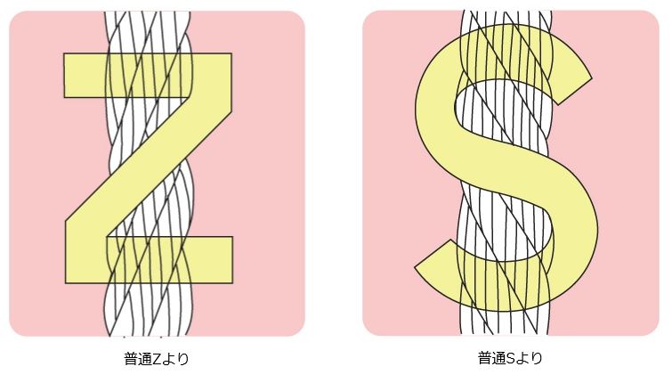 「普通より」と「ラングより」はストランドのより方向とロープのより方向によって区分されるよ。